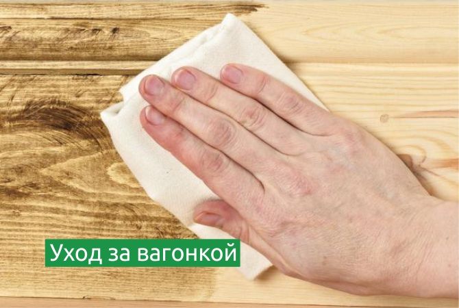 Пыль легко удалится в процессе сухой уборки. А если вы испачкали евровагонку, пятно можно смыть мыльным раствором, после чего вымытое место нужно насухо протереть.